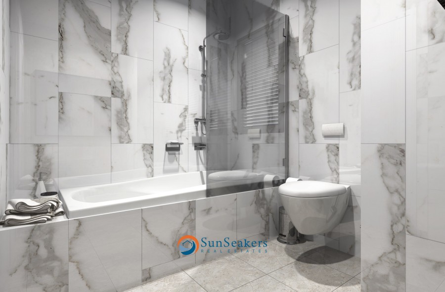 The apartment features a spacious open-plan living and dining area, the kitchen is fully fitted offering ample storage and functionality for everyday living and two comfortable bedrooms with built-in wardrobes. There are also two private balconys, perfect for relaxing and enjoying the Mediterranean climate. The bathrooms are modern and include a full-sized bathtub.