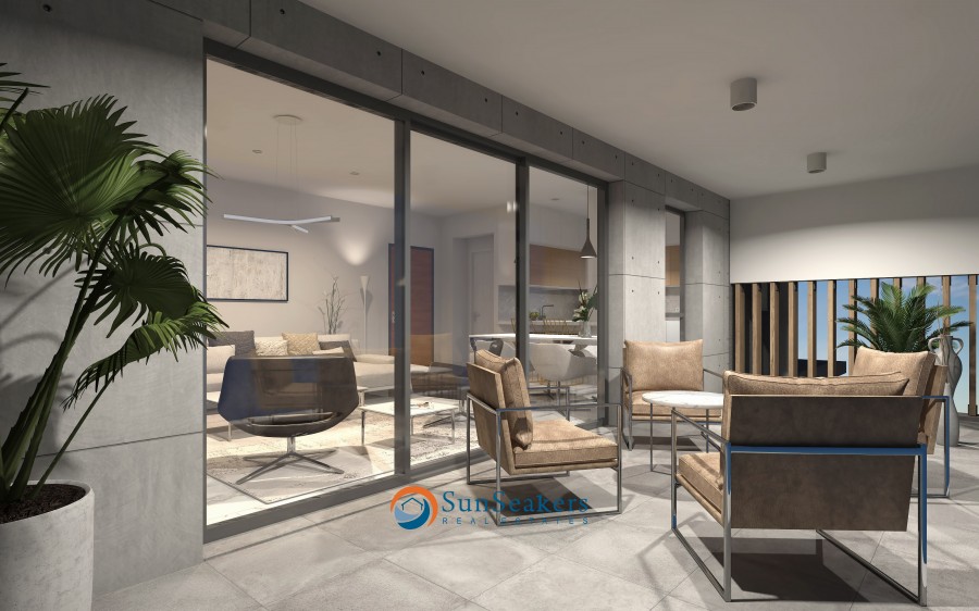 The apartment features a spacious open-plan living and dining area, the kitchen is fully fitted offering ample storage and functionality for everyday living and three comfortable bedrooms with built-in wardrobes. There are also private balconys, perfect for relaxing and enjoying the Mediterranean climate. The bathrooms are modern and include a full-sized bathtub.