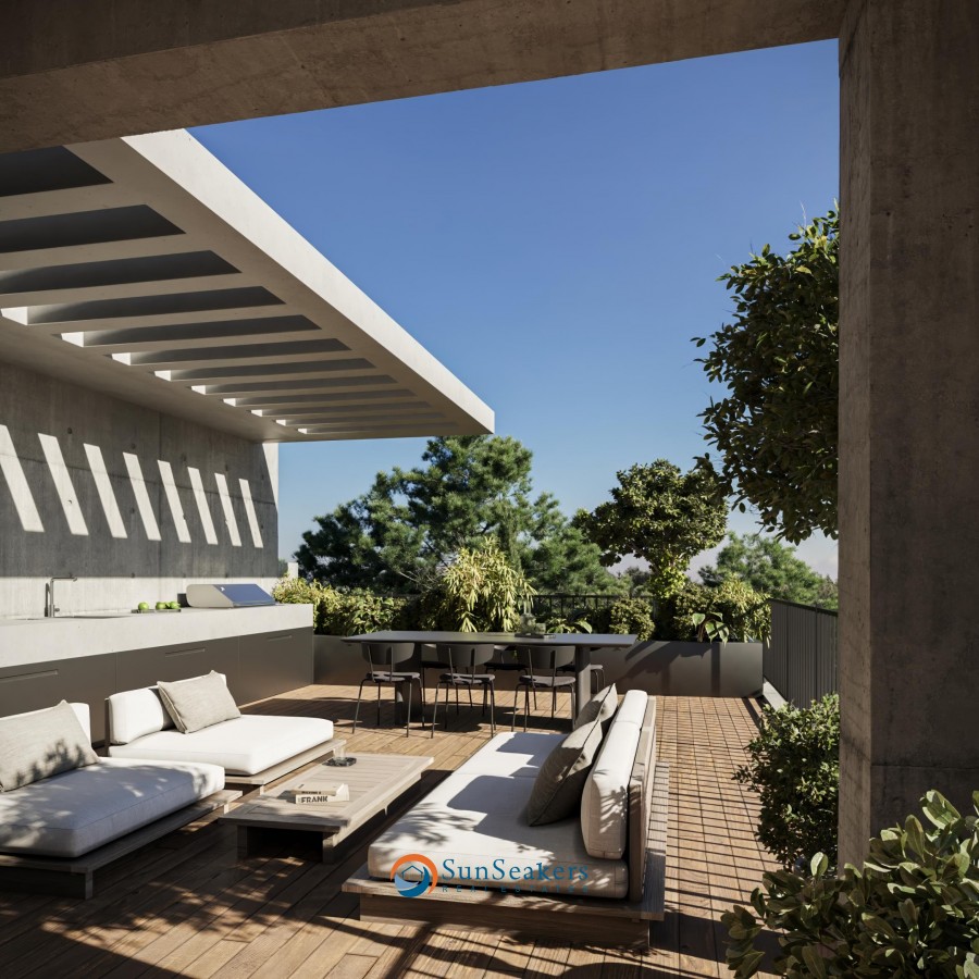 This contemporary apartment development blends modern design with a prime central location, just moments from the sea in the heart of Paphos. Its architectural philosophy is reflected in fair-faced concrete exterior walls and the use of top-quality marble and parquet flooring, all presented in a natural earth-tone palette that harmonises urban living with organic aesthetics.