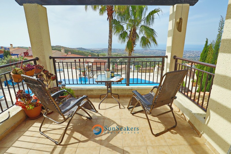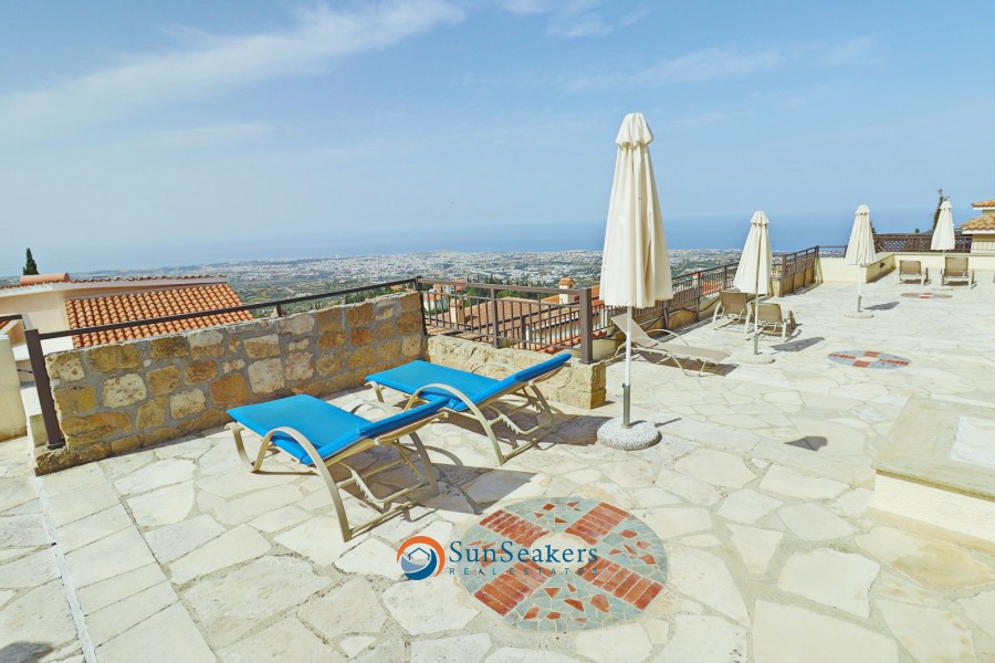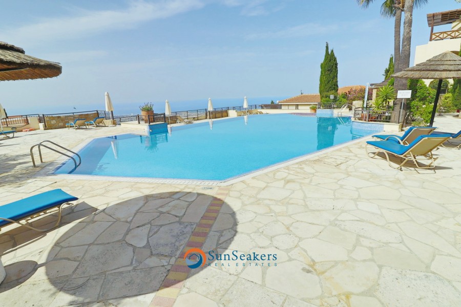 Perched on a prestigious hilltop in Tsada, Vikla Village, this elegant two-bedroom, two-bathroom apartment enjoys truly panoramic sea views, encompassing the Paphos coastline and the charming village of Tsada, renowned for its traditional coffee shops and authentic tavernas.