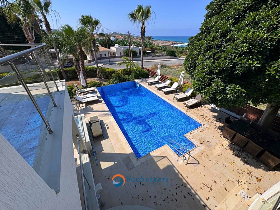 This stunning detached, gated private villa offers luxury coastal living just a 1-minute stroll from the seafront, nestled near charming beach tavernas and local shops. Located just 5 minutes from Coral Bay and 10 minutes from Paphos, with a regular bus service to Paphos harbour and the old market, it combines tranquillity with convenience.