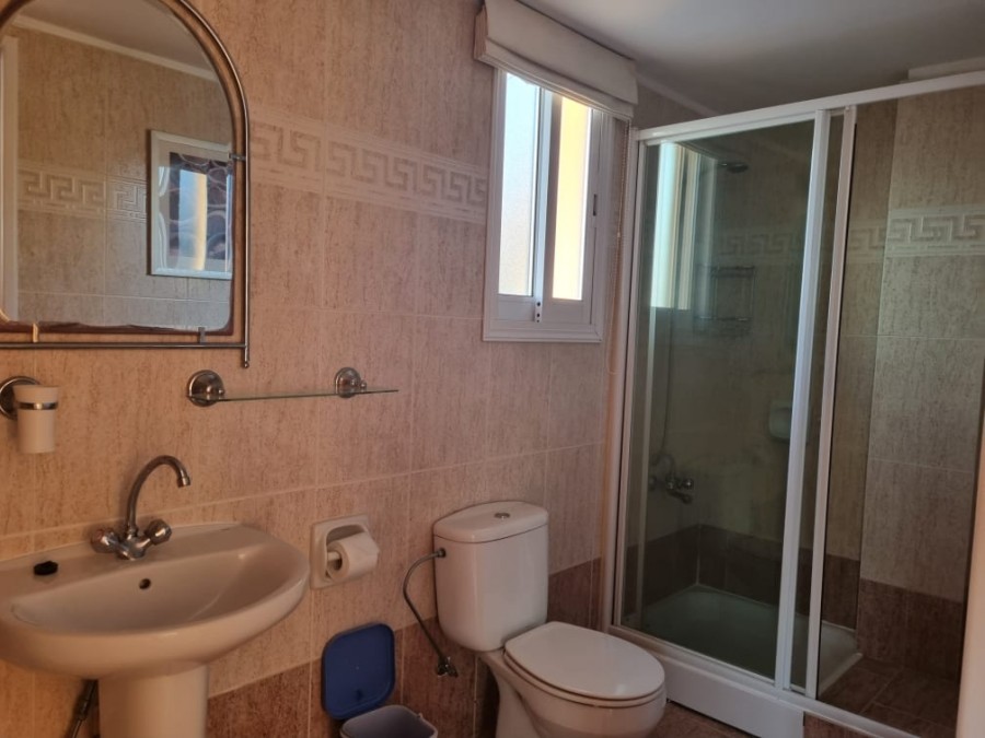 At the ground floor the property offers a separate fully fitted and equipped kitchen, an open plan dining and living area with windows and patio doors which leads to cover and uncover verandas. At the first floor the property offers three double bedrooms, with a family bathroom. The master bedroom had it's own en-suite facilities with shower.