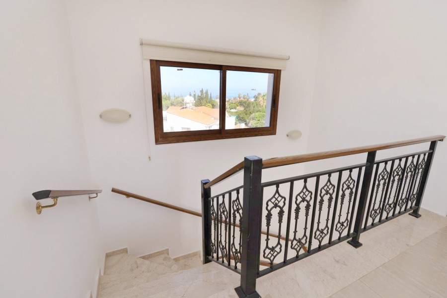 Taking the staircase to the 1st floor you will find a very spacious bedroom hall with wardrobes which can be easily and inexpensively convert into a fourth bedroom. You will also find the two Master suites with en-suite facilities. All the bedrooms have private balconies overlooking the Mediterranean sea, nature & mountain views.