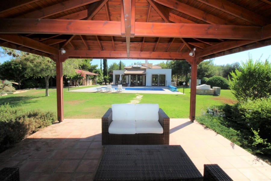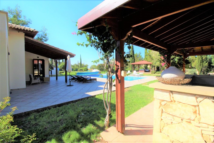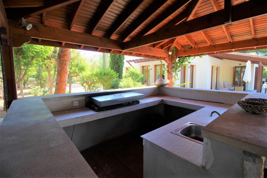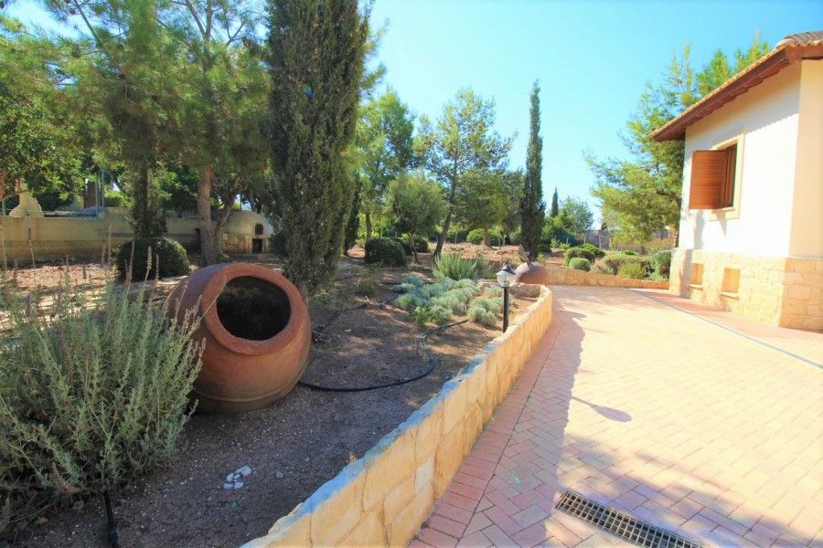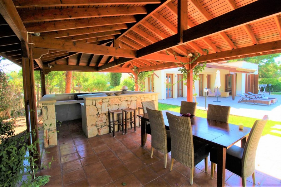 Stepping outside is quite breath-taking with plenty of entertainment areas to use include a spectacular BBQ area with dining facilities and a separate pergola at the end of the garden for those relaxing moments of the day. The owner was very clever when building the villa because the villa is built on one plot and the second plot is currently used as a garden giving the prospective buyer the opportunity to build a completely separate luxury villa on the grounds. The owner is selling the villa fully furnished with all luxury fixtures and fittings. The owner has also included in the property a private water well saving a lot of money per year plus extras like traditional Cypriot clay ovens etc. The property is very unique in its own right and has to be viewed to be fully appreciated.