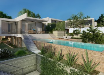 Taking the elegant staircase to the first floor, the upper hall reveals a refined office space. You will also find the opulent owner's suite, which boasts luxurious en-suite facilities and a walk in wardrobe. Three additional junior suites, each generously proportioned, share this floor, along with a spacious family bathroom. A large balcony completes this level, presenting views of the mountains and the sea, allowing residents to enjoy tranquil moments in a setting of natural beauty.