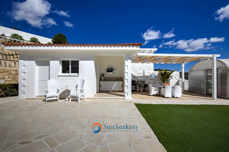The outdoor area also features a large and exclusive Lounge & BBQ area, providing a delightful setting for hosting gatherings, located next to the pool area and with striking views over Cyprus most beautiful coastline.