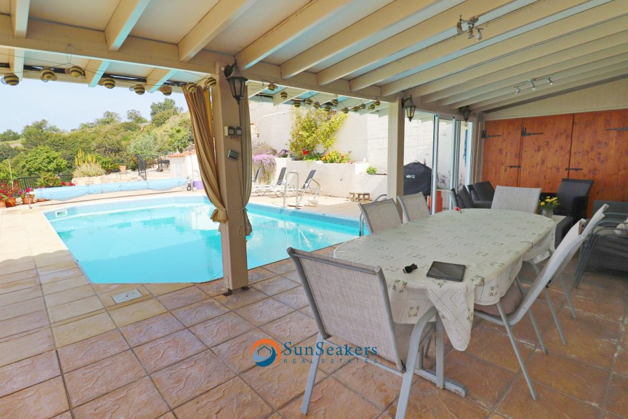 Outside, the villa continues to impress with a large private swimming pool powered by photovoltaic panels, several relaxation and seating areas, mature fruit trees, and ample storage rooms throughout the grounds.