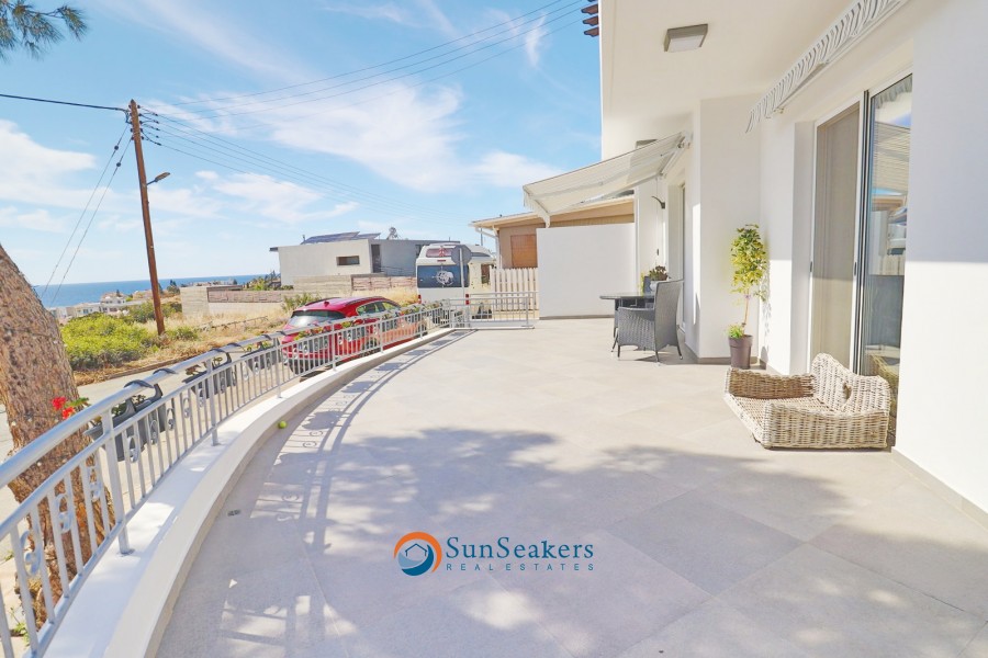 Located in the prestigious Sea Caves area of Peyia, this beautifully renovated two-bedroom corner apartment with an additional studio annex offers an exceptional blend of comfort, style, and convenience — all just a short stroll from the sparkling Mediterranean, the iconic Sea Caves, and scenic coastal trails.