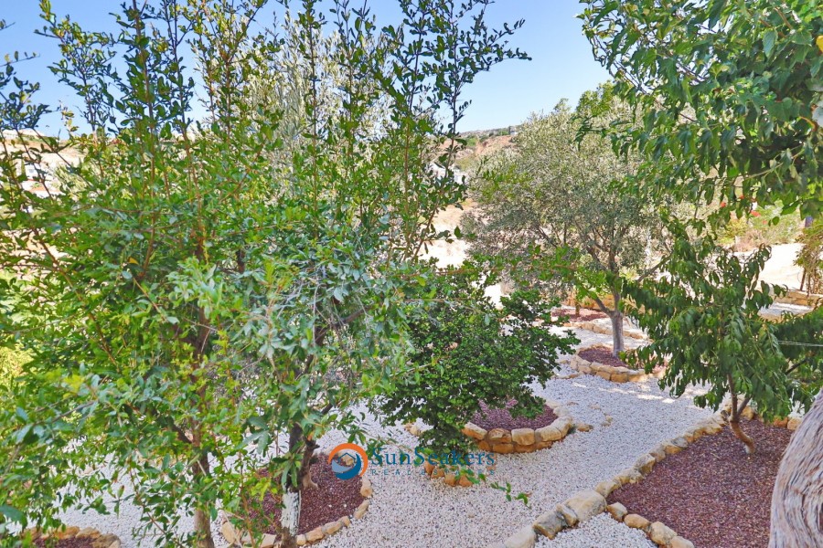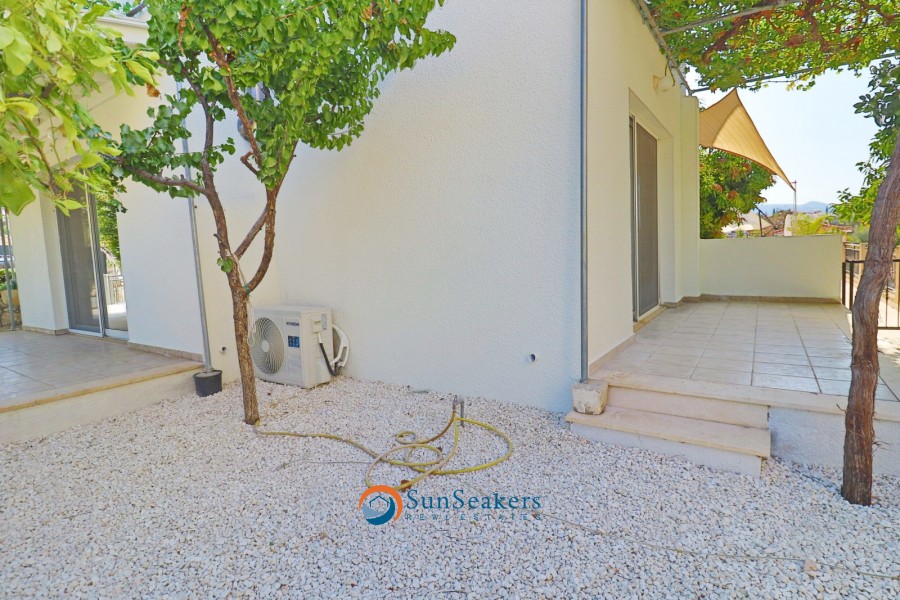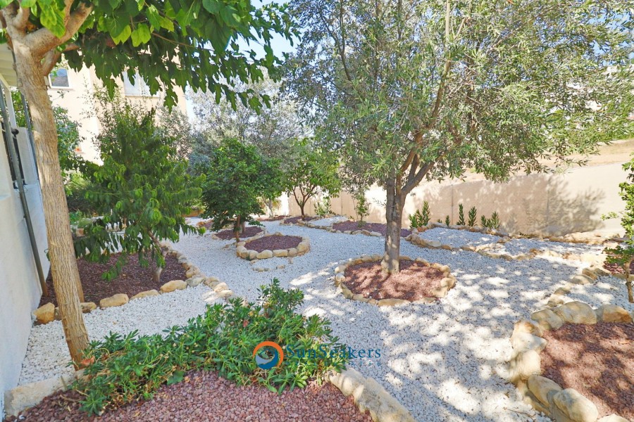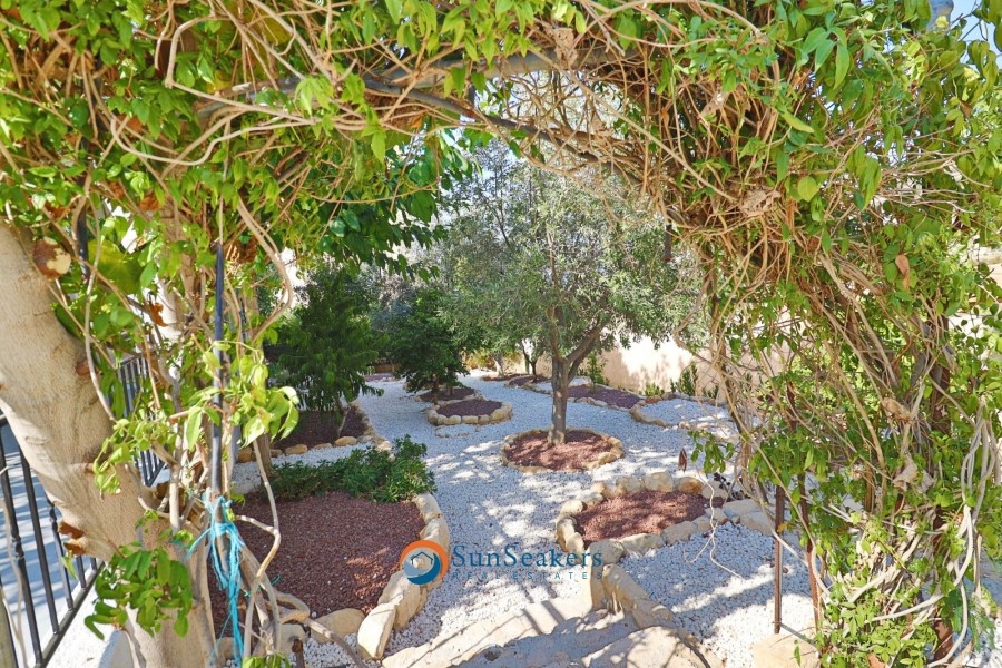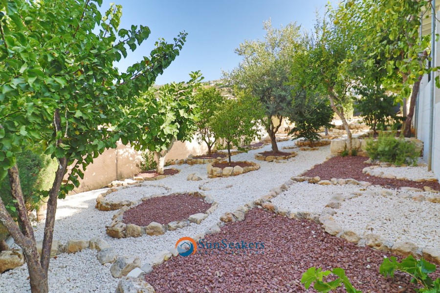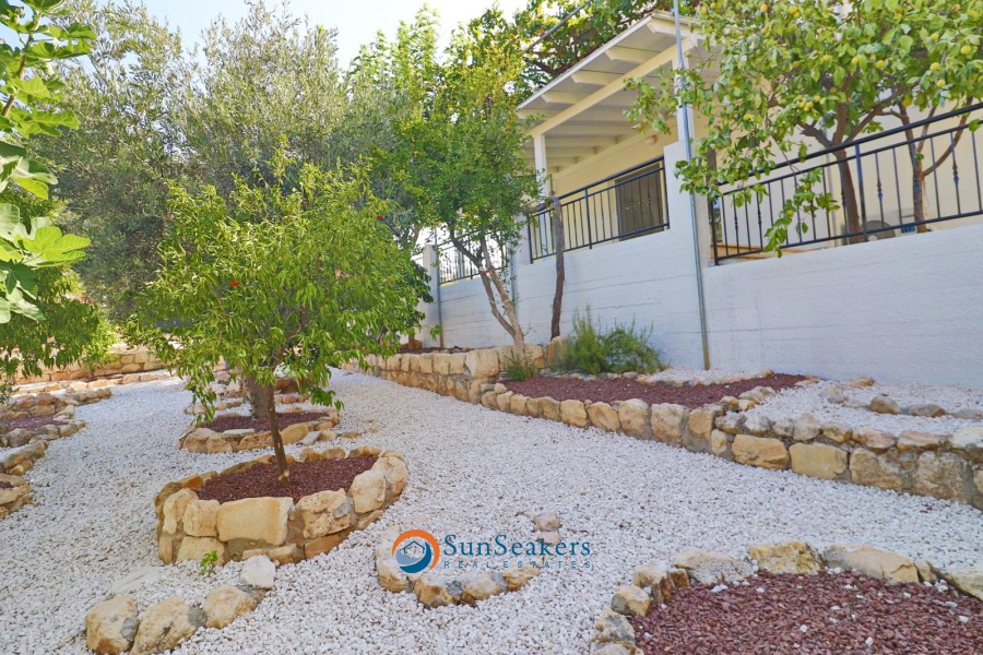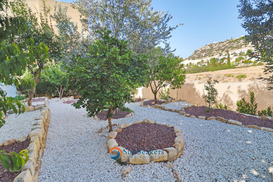 Positioned as a prime corner unit and adjacent to a lush green area lovingly maintained by the current owner, the property is enveloped by meticulously landscaped gardens adorned with a rich variety of fruit trees, pomegranate, olive, figs, mulberry, mandarin, orange, pomelo, lemon, and more, but also ensures that no further construction will take place there, preserving your uninterrupted views and tranquil surroundings.