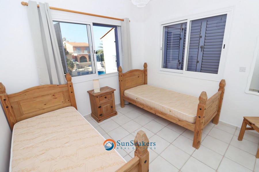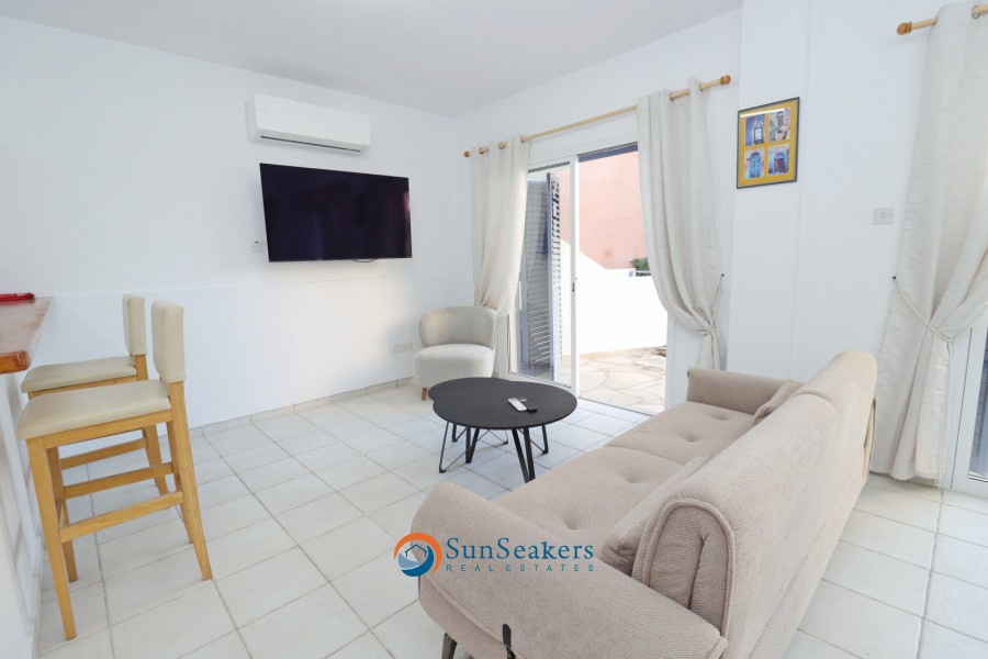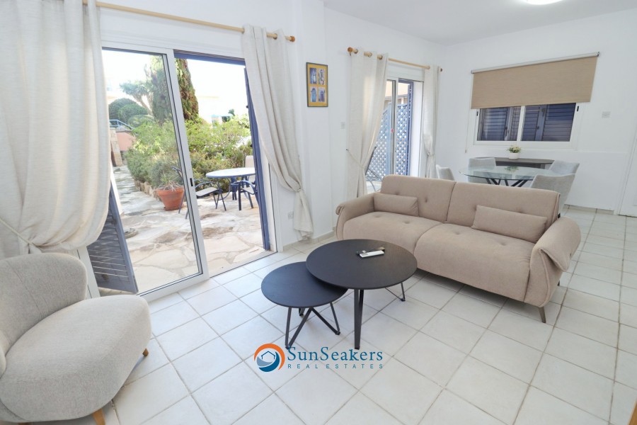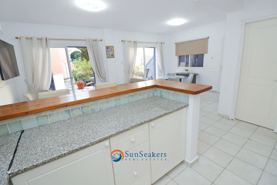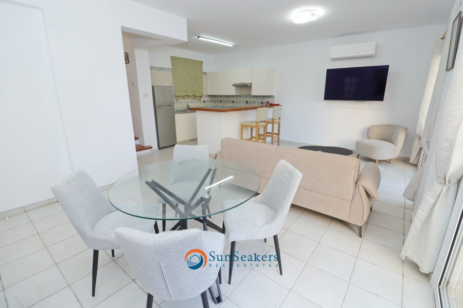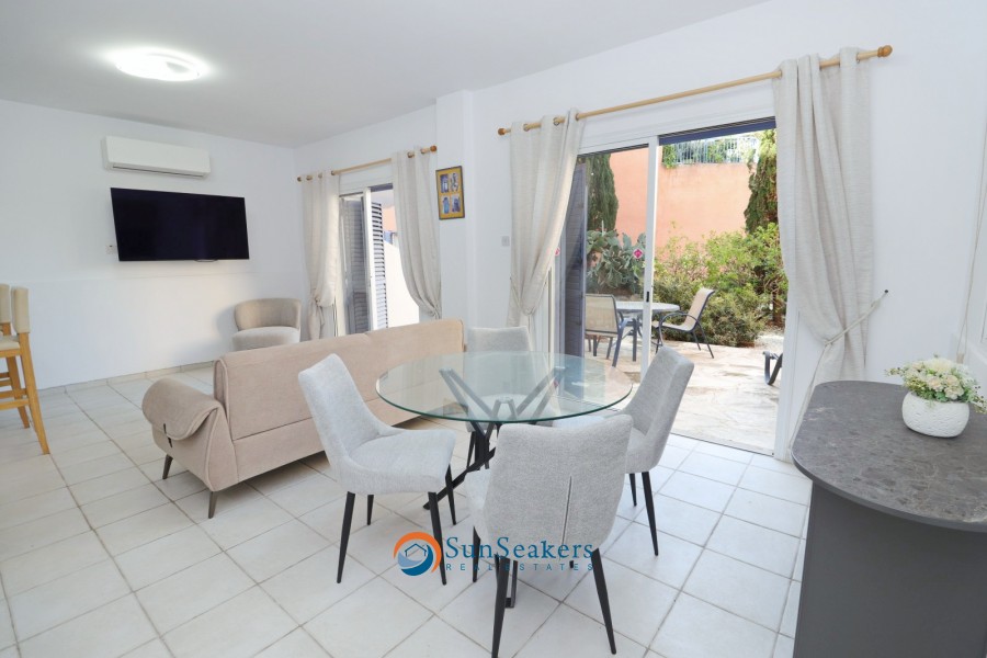 This beautifully presented two-bedroom end-of-terrace townhouse is ideally situated in the sought-after area of Lower Chloraka, just 500 metres from the coastline. The property enjoys a prime location, only a five-minute drive from Paphos Mall and approximately ten minutes from the renowned Coral Bay, while remaining within close proximity to schools, supermarkets, and everyday amenities. It is perfectly suited as a permanent residence, a holiday retreat, or a sound investment opportunity.