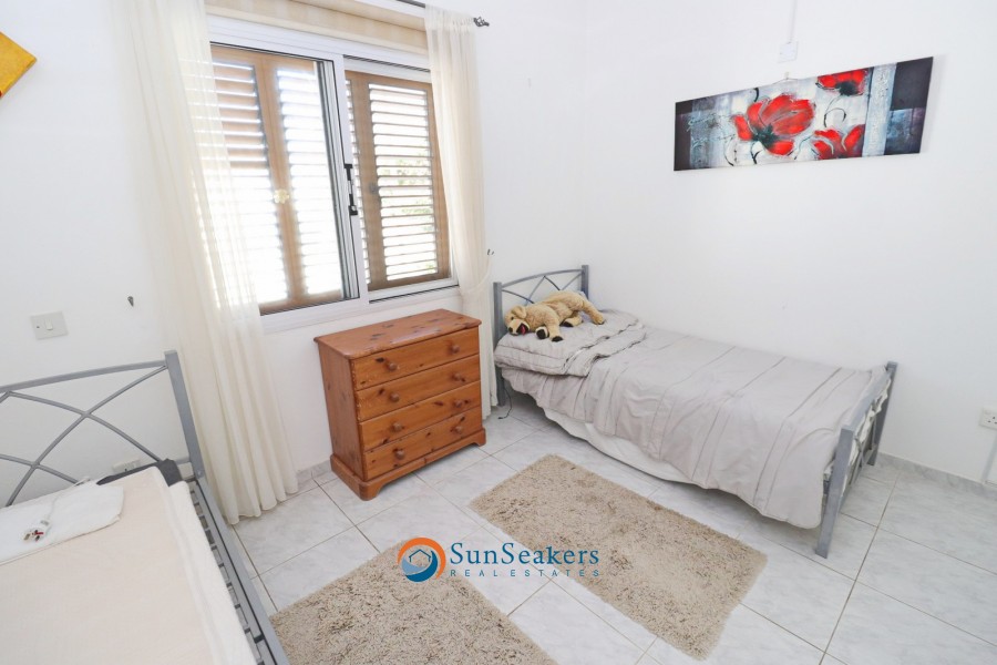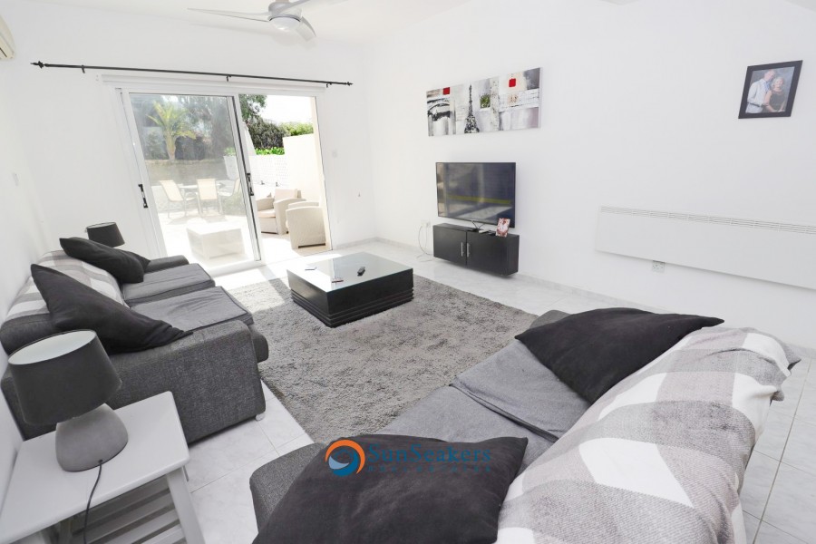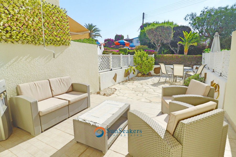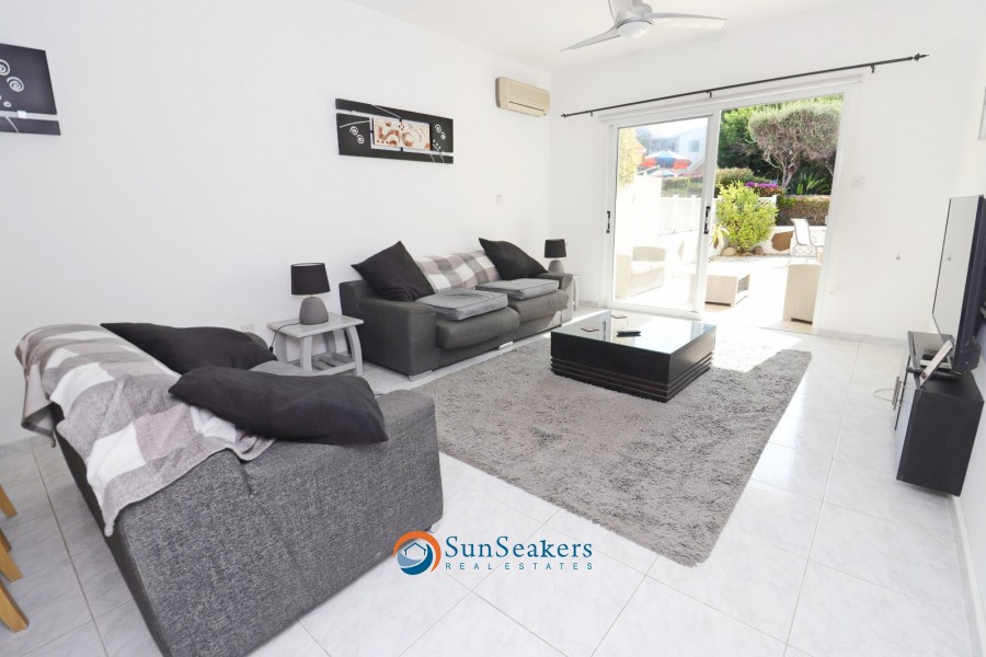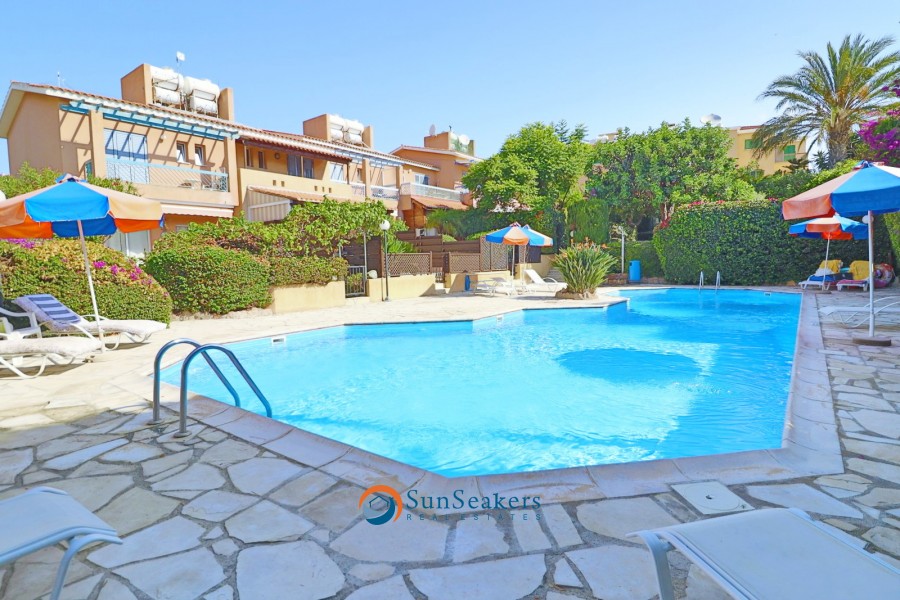 Nestled within a prestigious development in the highly sought after area of Lower Peyia, this beautifully presented two bedroom townhouse harmoniously combines comfort, elegance, and Mediterranean charm. Positioned on a peaceful cul-de-sac, the property is surrounded by beautiful, landscaped gardens bursting with vibrant flora, while a large communal swimming pool completes the serene and picturesque setting.