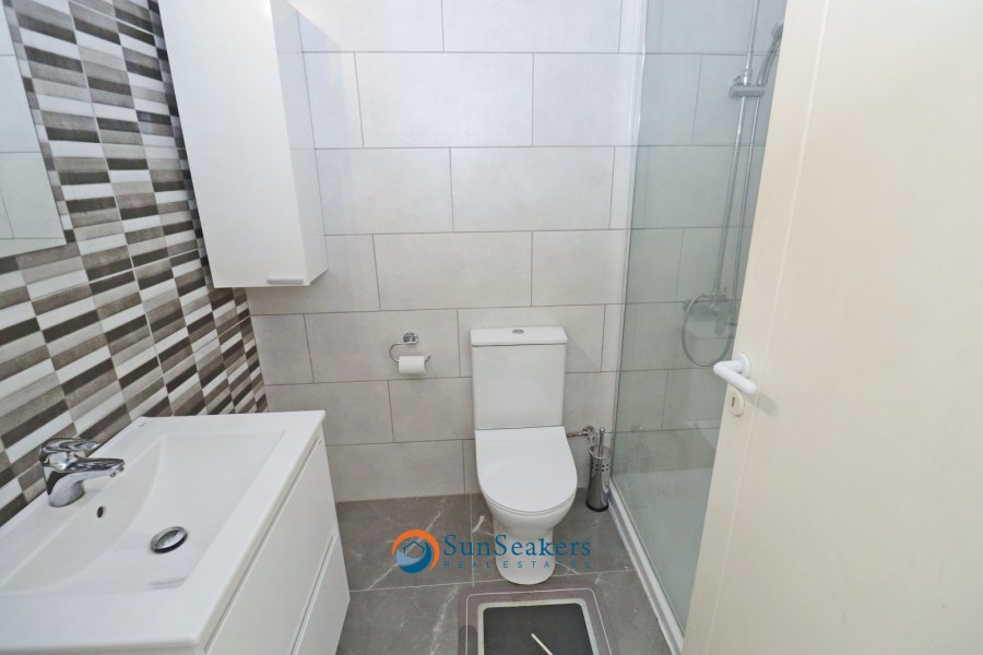 Taking the staircase to the first floor, two spacious double bedrooms await, accompanied by a modern family bathroom. One of the bedrooms benefits from a private balcony overlooking the landscaped gardens and inviting pool , an intimate setting ideal for morning coffee or evening relaxation.